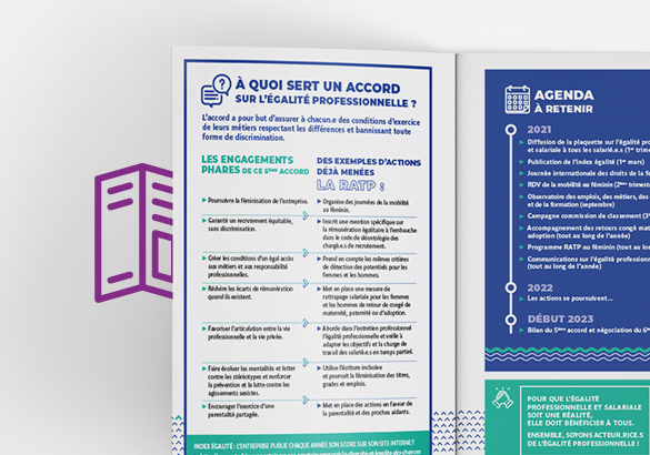 Dans le cadre des accords pour l’égalité homme-femme au sein de la RATP, nous avons créé le logo et la charte graphique de leur programme Égalité Pro.