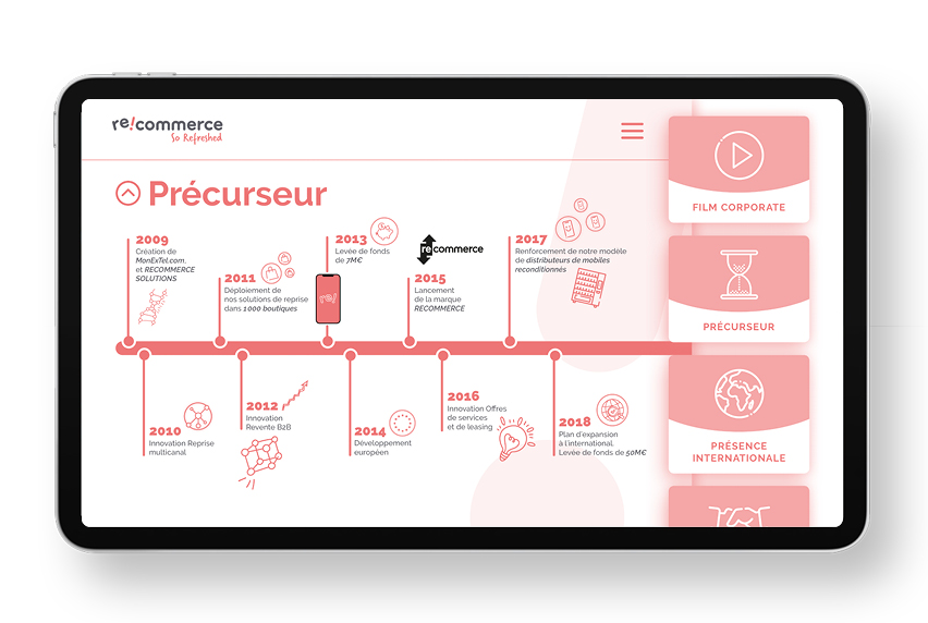 À l'occasion de la mise en place de la nouvelle image de marque et la création d'un showroom au sein de l'entreprise, nous avons mis en place une application qui sert de support à présentation de l'entreprise.